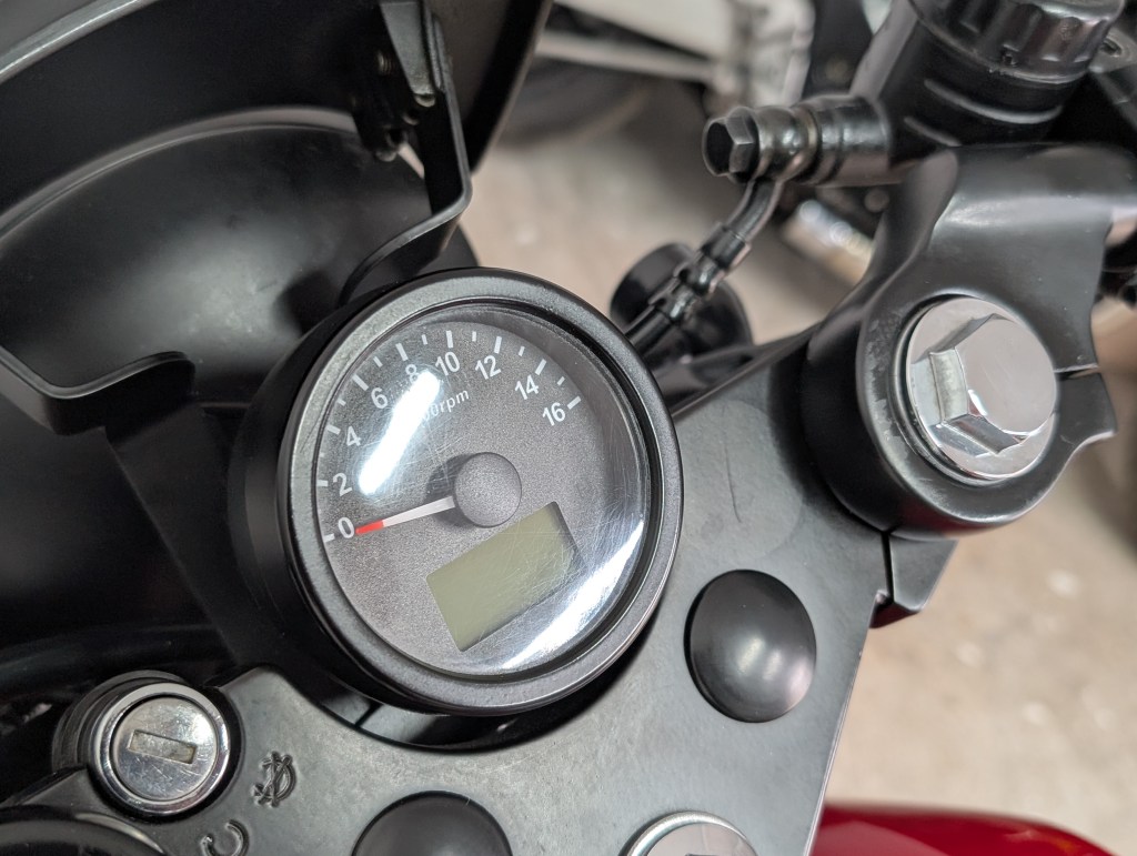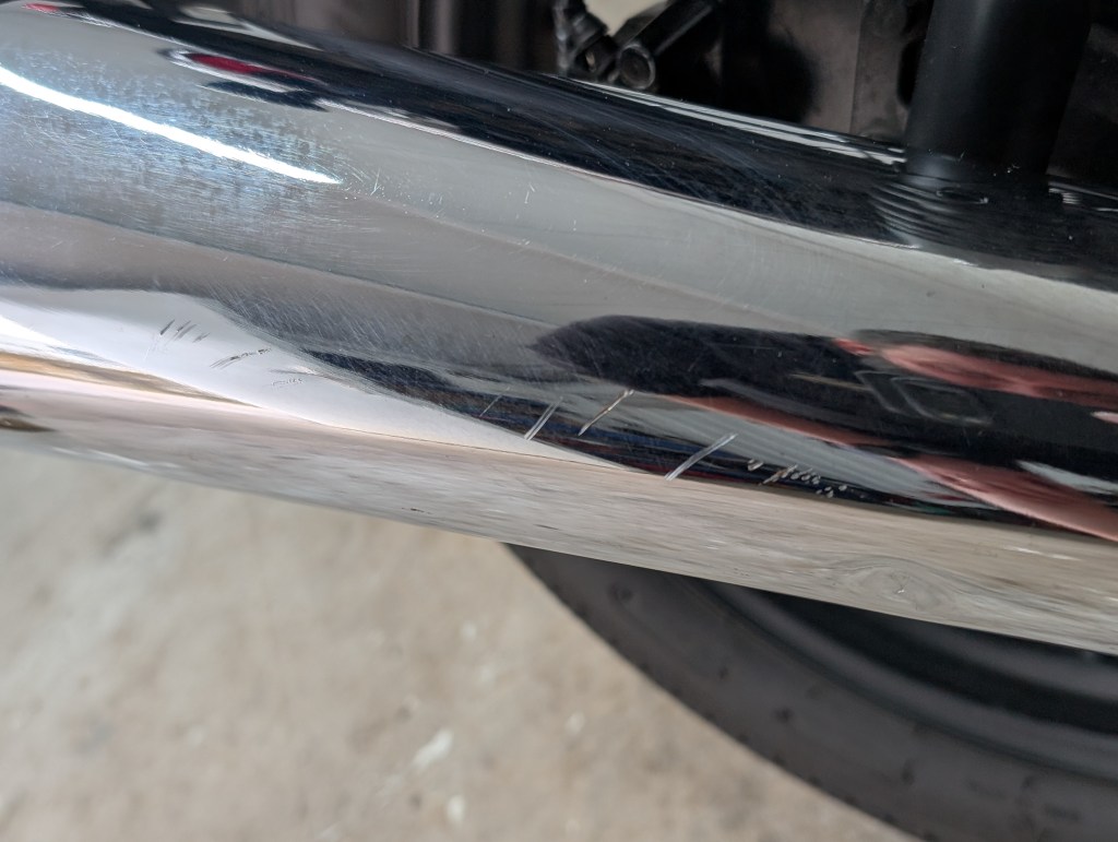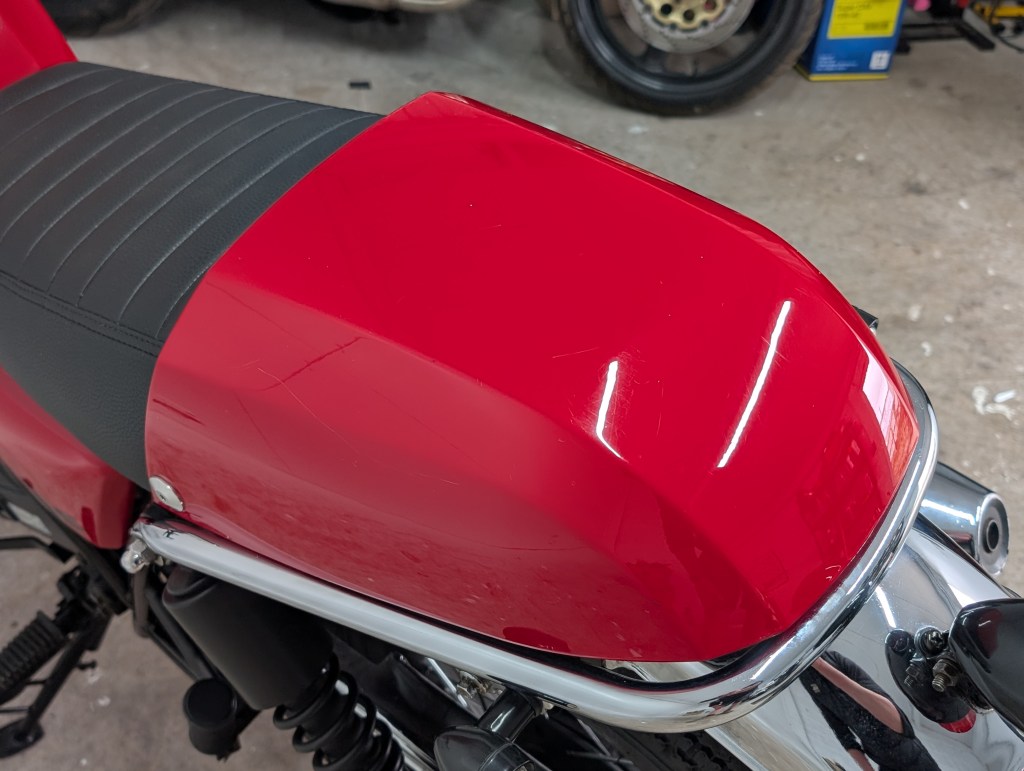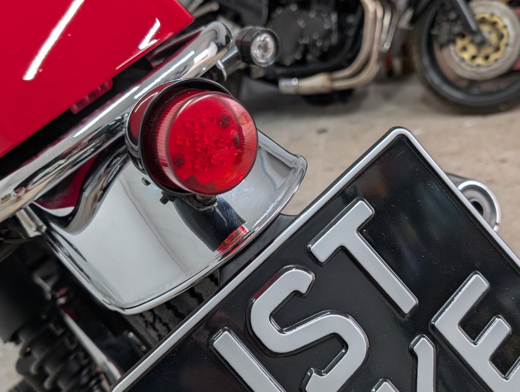 As you can see in the images. – the bike is in great shape. We have some light scuffs in a few places but nothing that you wouldn’t expect. The only notable issues are a slight scratch and a small dint on the exhaust and some minor paint issues on the tank near the filler cap.