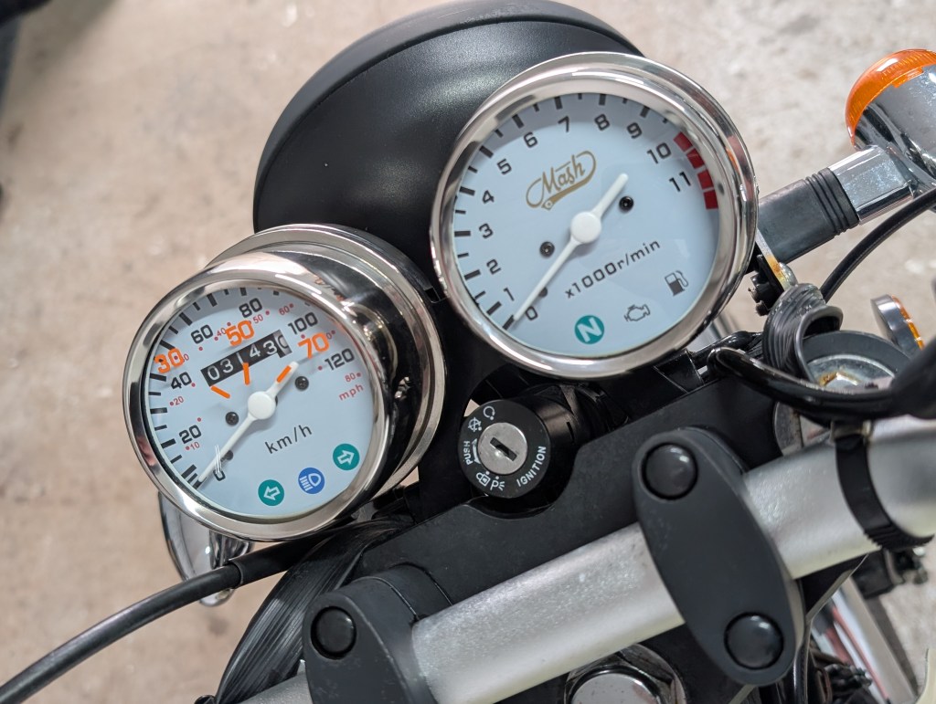 Great condition and a very recent full service. The Mash offers a low seat height and it’s light weight makes this ideal for any learner or commuter. The bike is showing 3143 on the clock but this is in km’s meaning the bike hasn’t yet covered 2k miles. Everything works as it should so you will be able to jump on and get riding. Lovely little bike with loads of charm.